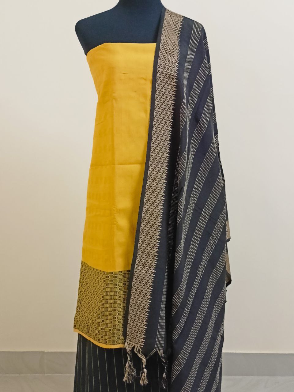 SC2324 - Khadi cotton salwar materials, Yellow and black