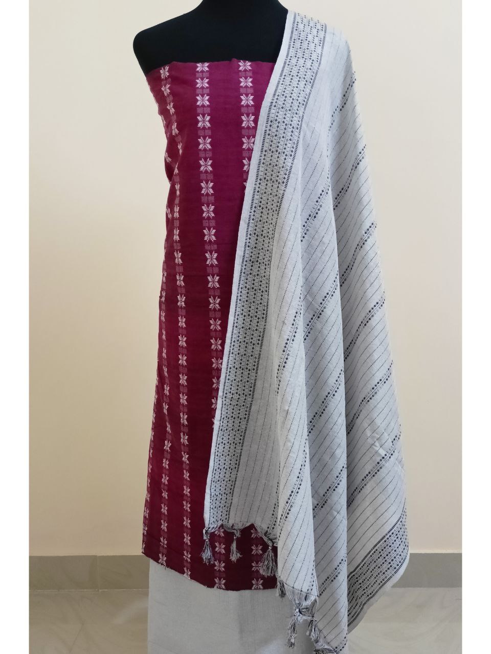 SC2326 - Khadi cotton salwar materials, Purple and grey white