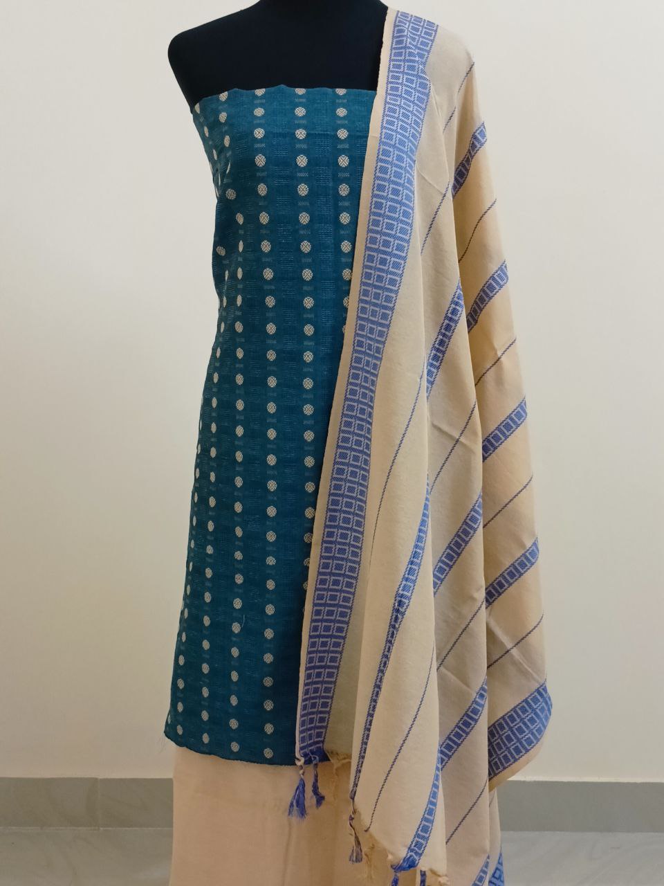 SC2327 - Khadi cotton salwar materials, Peacock green and beige